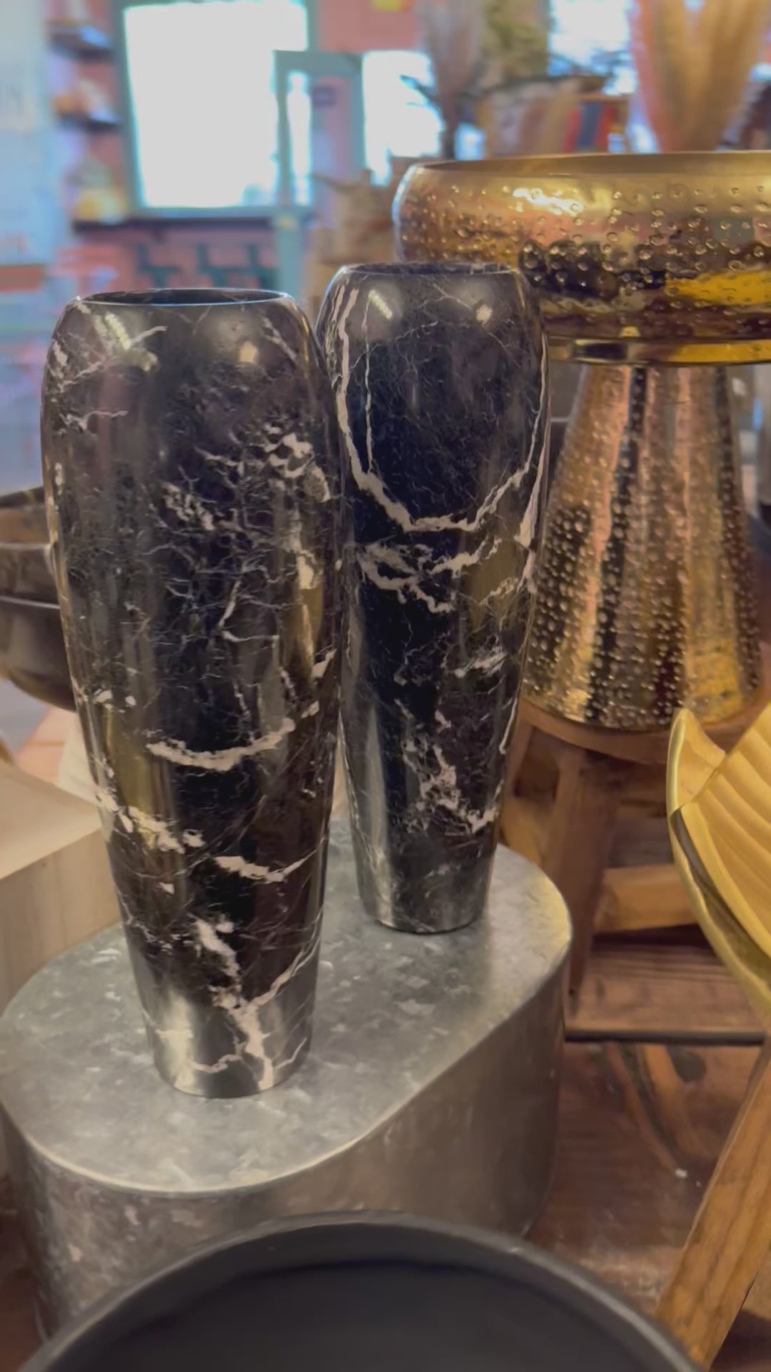 12" Sculpted Vase in Marble & Onyx: Black Zebra Marble